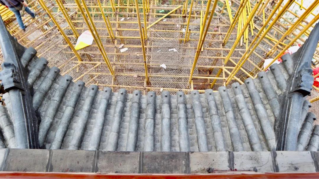 ? ? ? ??本次工程遵循不改變?cè)瓲畹奈奈镄迯?fù)原則,屋面的瓦、脊獸、如意、塔院地磚等構(gòu)件,盡量保留原有構(gòu)件、修復(fù)按照傳統(tǒng)工藝。