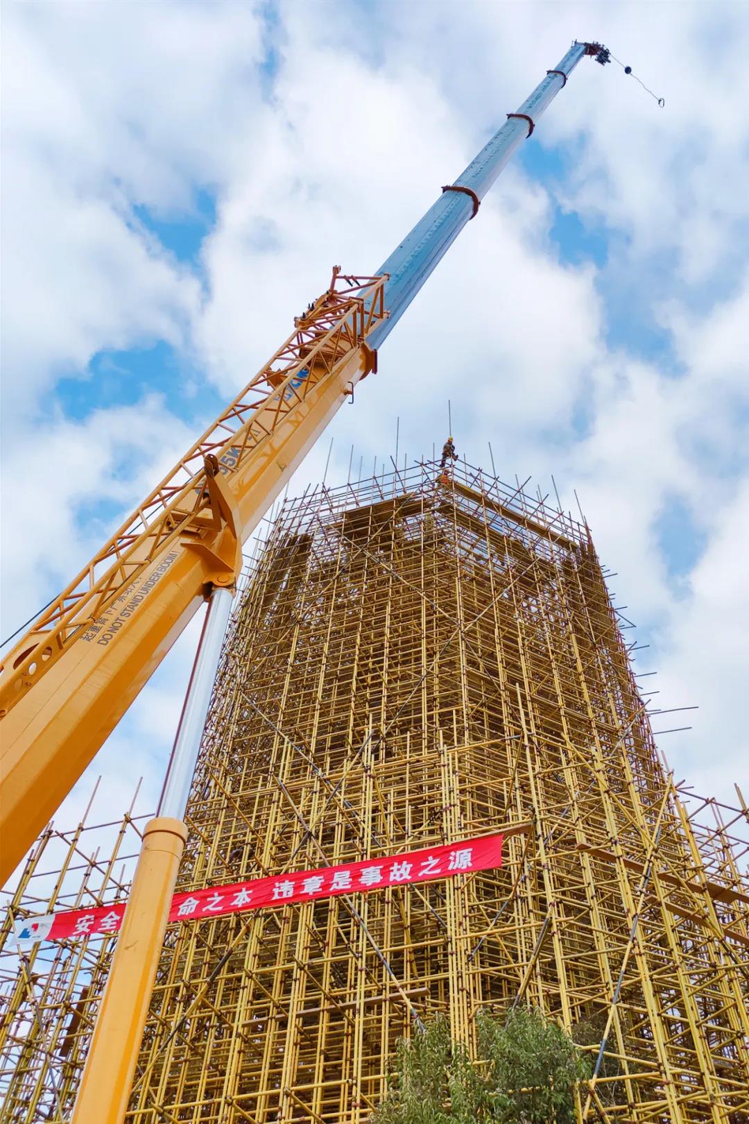 ? ? ? ??為了在龍華塔保養(yǎng)維護(hù)過(guò)程中,腳手架不與龍華塔有任何部位接觸,腳手架搭建方案經(jīng)過(guò)縝密設(shè)計(jì)與嚴(yán)格審查后,才得以實(shí)施。腳手架總重量達(dá)100多噸,從搭建方案設(shè)計(jì)到搭建完成,共耗時(shí)近4個(gè)月,占據(jù)了本次龍華塔保養(yǎng)維護(hù)項(xiàng)目總工期的近一半。