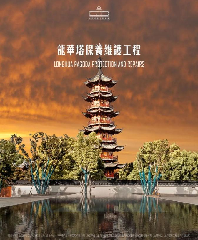 ? ? ? ??龍華塔始建于公元247年,宋代重建,為第六批全國(guó)重點(diǎn)文物保護(hù)單位,塔身八面七層,是上海地區(qū)最完好的樓閣式塔之一。此次保養(yǎng)維護(hù)工程以不改變文物原狀為原則,最小干預(yù)實(shí)施“精細(xì)化”護(hù)理,拆除上世紀(jì)90年代安裝的泛光照明燈具和管線,消除文物安全隱患。對(duì)塔剎貼金剝落部分予以修復(fù),清除屋面雜物、植物等,減少高空墜物風(fēng)險(xiǎn)。對(duì)木構(gòu)件、檐角風(fēng)鐸實(shí)施養(yǎng)護(hù),恢復(fù)“秋江塔影”的歷史意境。