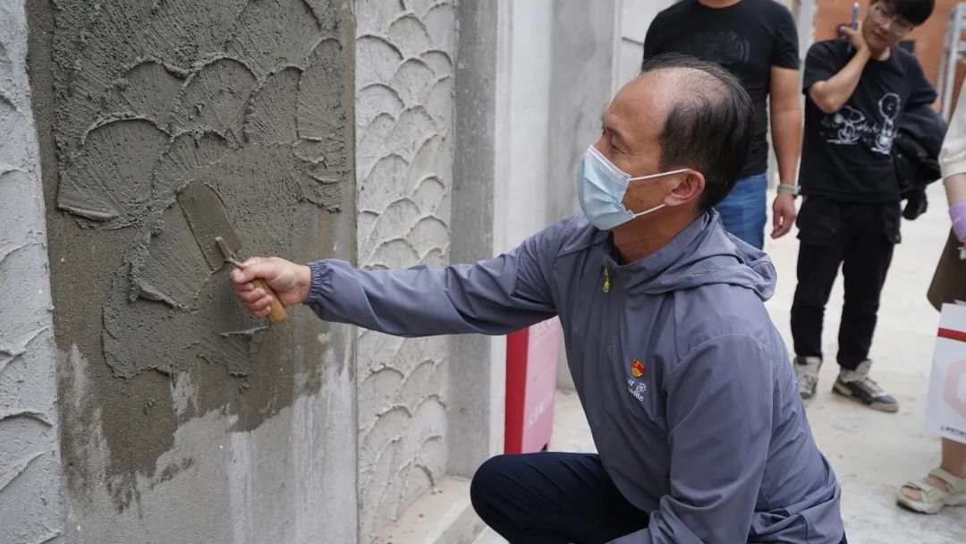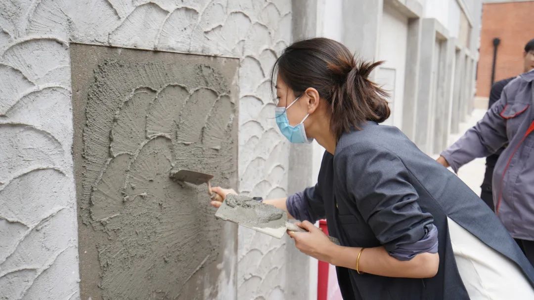 歷史建筑的修繕離不開工匠們的辛勤耕耘,他們以嫻熟技藝重現(xiàn)建筑細(xì)節(jié),以精工匠心重綻建筑神采?;顒蝇F(xiàn)場,來自維方公司的工匠師傅為大家展示了魚鱗拉毛工藝。調(diào)制漿料,手腕一轉(zhuǎn),著力一刷,魚鱗輪廓就這樣完成了,極具弧形美感。在場的參觀者們嘖嘖稱奇,在老師傅的教導(dǎo)下,大家也化身為工匠學(xué)徒,體驗了一回修繕技藝的實操過程,新鮮、有趣又有意義。